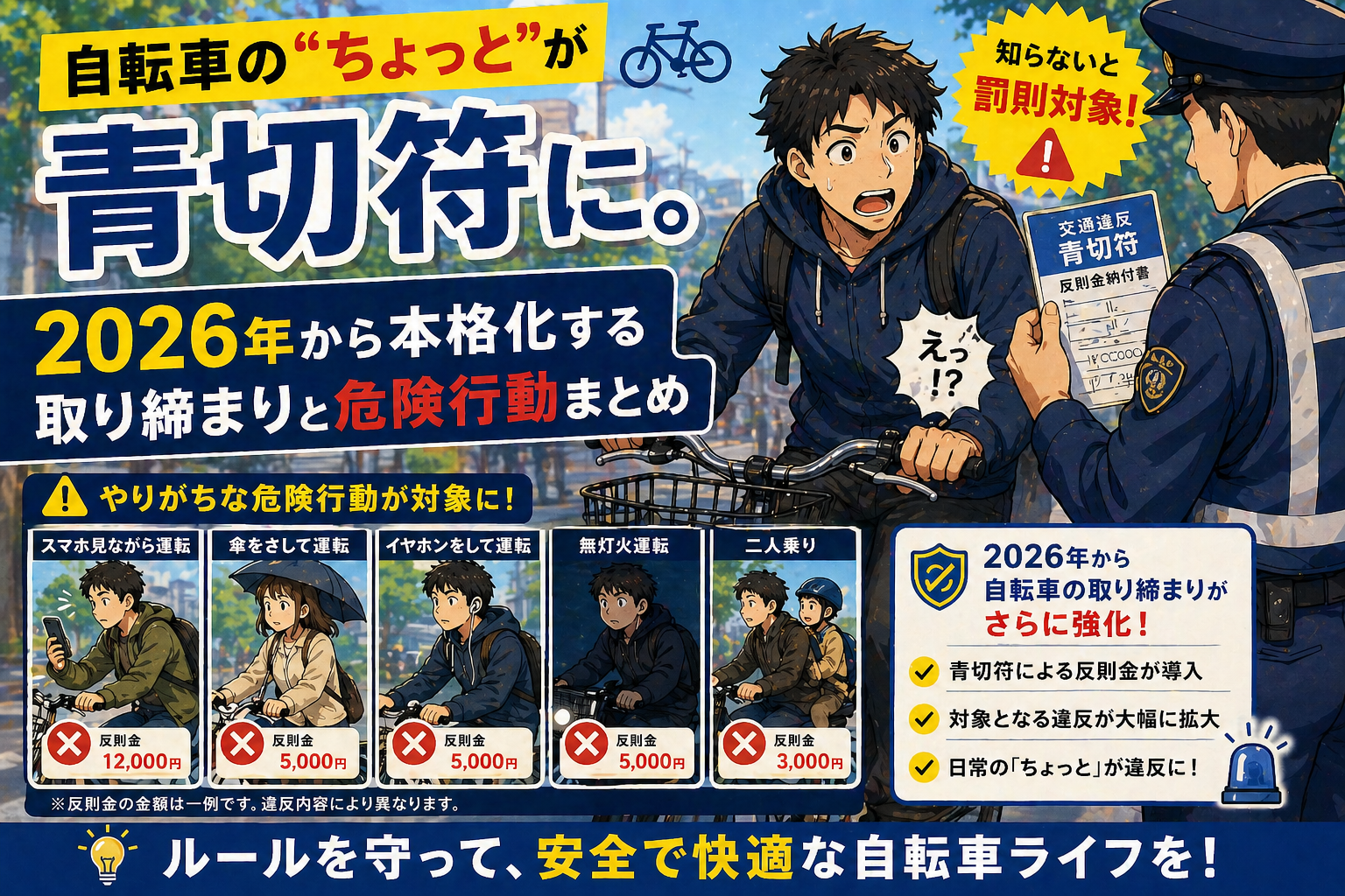 2026年4月1日から、自転車の違反にも「青切符」「赤切符」制度が本格導入されました。
